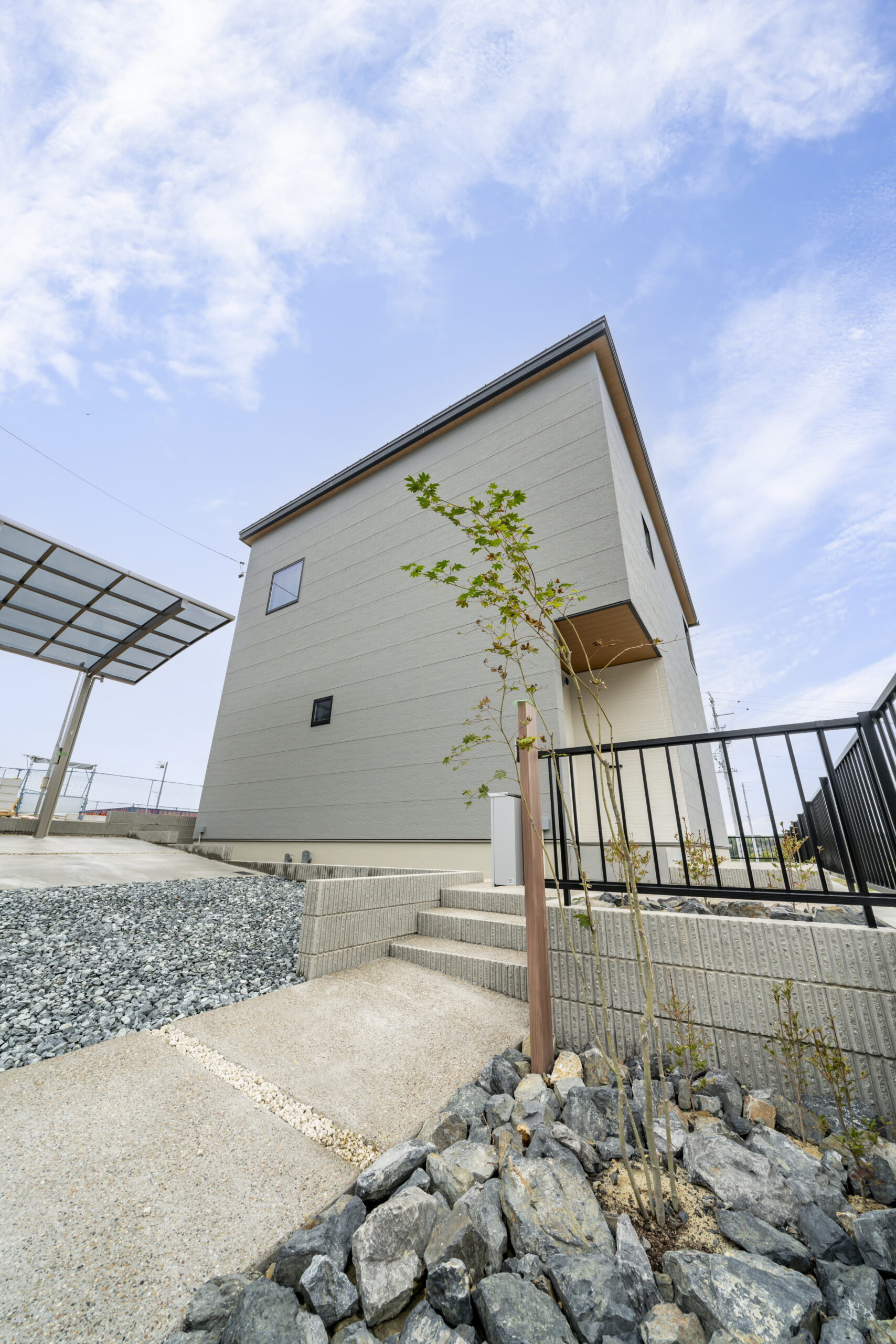 外観は、周囲の景観になじむシンプルナチュラルなデザイン。飽きのこない佇まいで、長く愛される住まいとなりました。