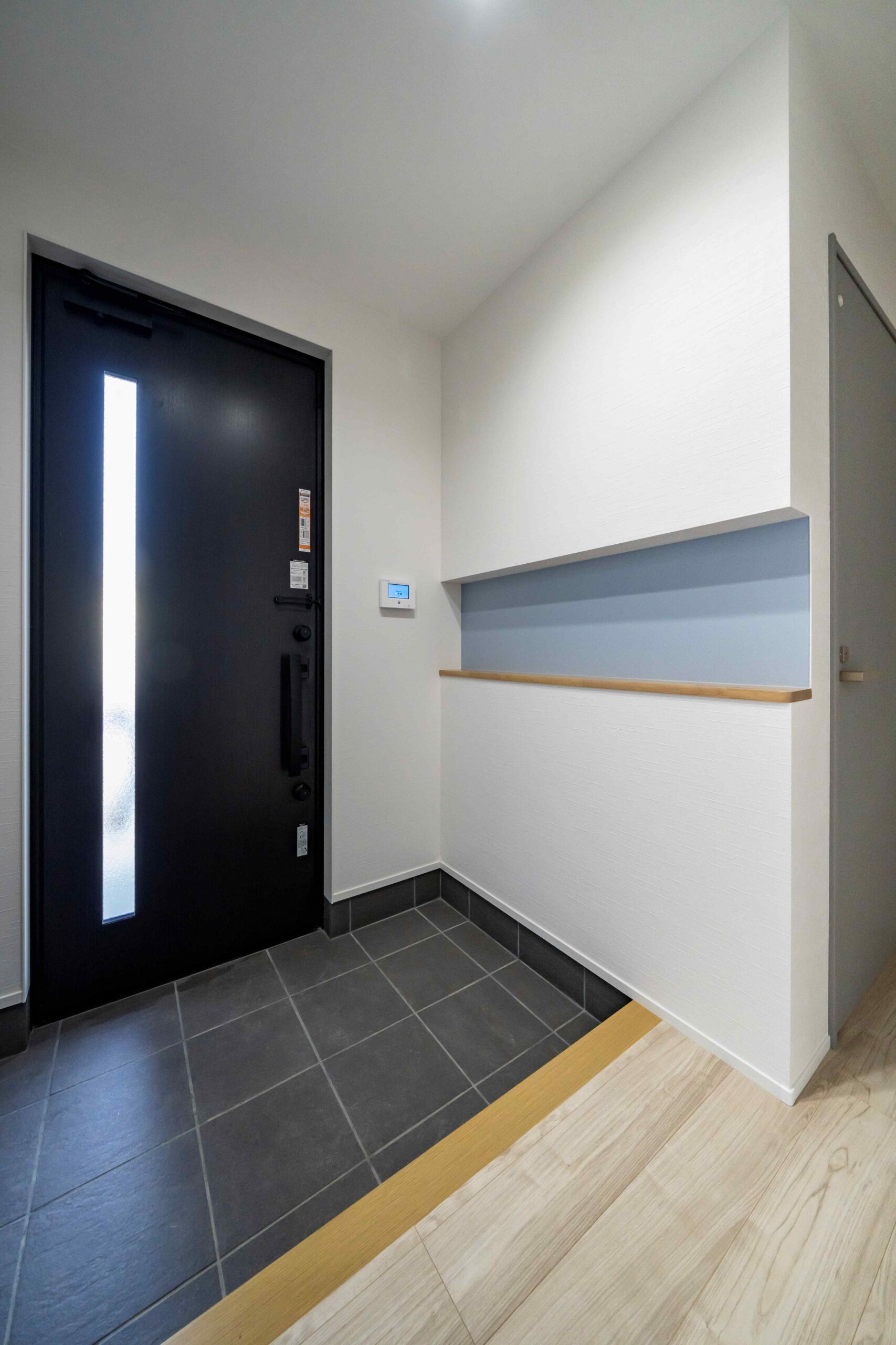 玄関のニッチや浴室のカラーコーディネートなど、細部にまでお施主様のこだわりが詰まっています。デザイン性と使いやすさを両立し、毎日の暮らしが楽しくなる素敵なお住まいとなりました。